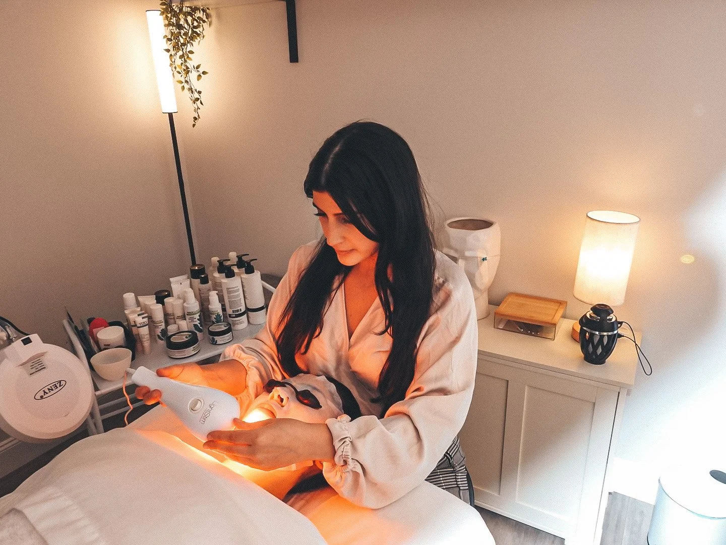 These techniques are accompanied with a cleanse, nourishing oils, and a revitalizing mask along with red LED Therapy to help build collagen and help restore skins health.